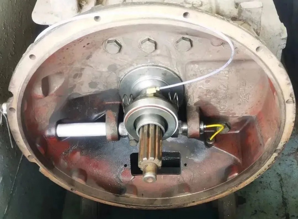 在以往的變速箱維修中我們時(shí)常發(fā)現(xiàn)撥叉軸銅套在沒(méi)有潤(rùn)滑的情況下出現(xiàn)嚴(yán)重磨損,經(jīng)常導(dǎo)致分離軸承導(dǎo)管斷裂等情況,無(wú)形中增加了維修次數(shù)和修理費(fèi)用,針對(duì)此類(lèi)情況,經(jīng)過(guò)多次摸索,通過(guò)對(duì)變速箱離合撥叉加裝自動(dòng)注黃油潤(rùn)滑系統(tǒng)成功解決修理難題。