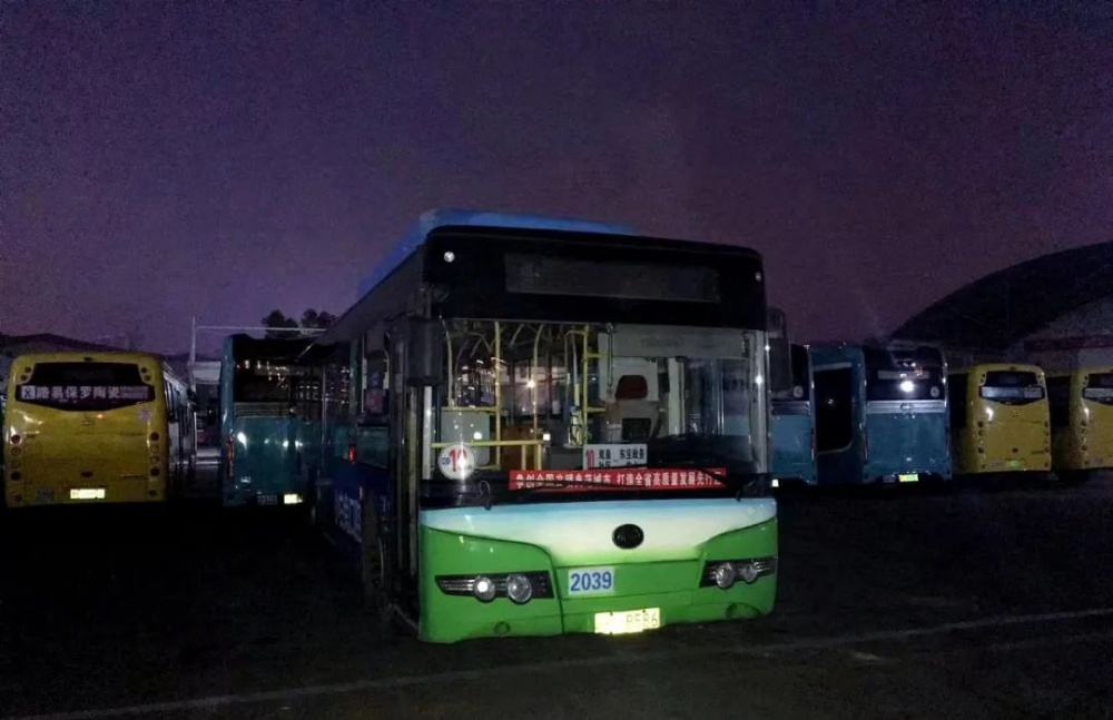 4點(diǎn)30分,魏全兵到達(dá)公司停車場(chǎng),對(duì)“老搭檔”進(jìn)行車身、燈光、胎壓、機(jī)油等每個(gè)項(xiàng)目例行檢查,考慮到過(guò)節(jié)比平常更要注重安全,他又反復(fù)巡檢確認(rèn),這才放心啟動(dòng)車輛。他運(yùn)營(yíng)的這趟班是公司值班車(接送首班車的駕駛員、后勤人員),從雙泉小學(xué)到東寶停保場(chǎng),將沿路的同事一一接上,送往目的地后,他再開始一天的營(yíng)運(yùn)工作。