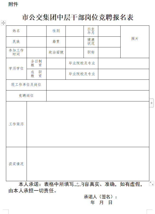 附件:市公交集團(tuán)中層干部副職崗位競聘報(bào)名表
