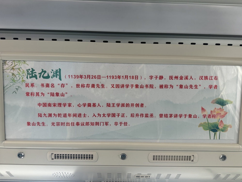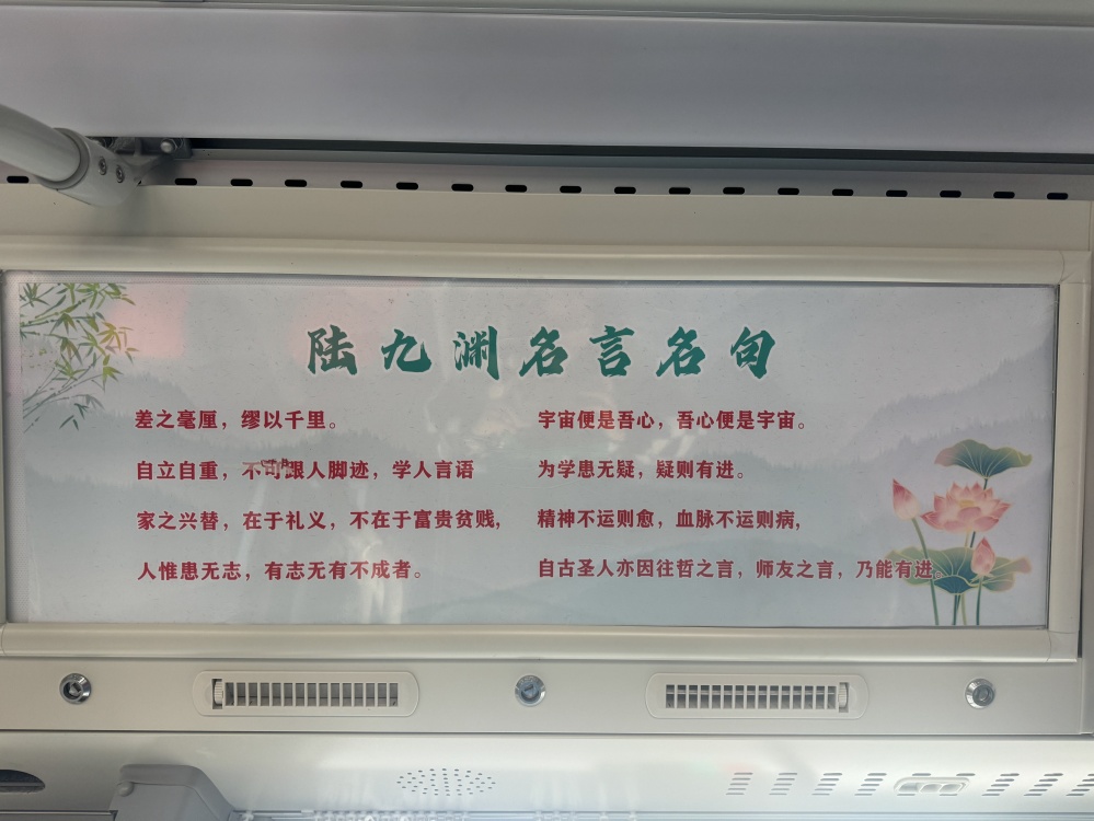 “陸九淵號(hào)”不僅僅是一條公交線路,更是一個(gè)移動(dòng)文化陣地。當(dāng)你踏上這趟公交車(chē),你會(huì)被駕駛員的熱情服務(wù)所感染,他們微笑著迎接每一位乘客,以?xún)?yōu)質(zhì)的服務(wù)彰顯著荊門(mén)的文化精神和城市溫度。車(chē)輛全部采用新能源公交車(chē),不僅環(huán)保節(jié)能,行駛起來(lái)也更為平穩(wěn),同時(shí),在車(chē)輛內(nèi)外裝飾以及“進(jìn)站、出站、溫馨提示”等場(chǎng)景語(yǔ)音播報(bào)融入陸九淵相關(guān)元素,讓乘客潛移默化的加深對(duì)荊門(mén)文化的認(rèn)識(shí)和理解。