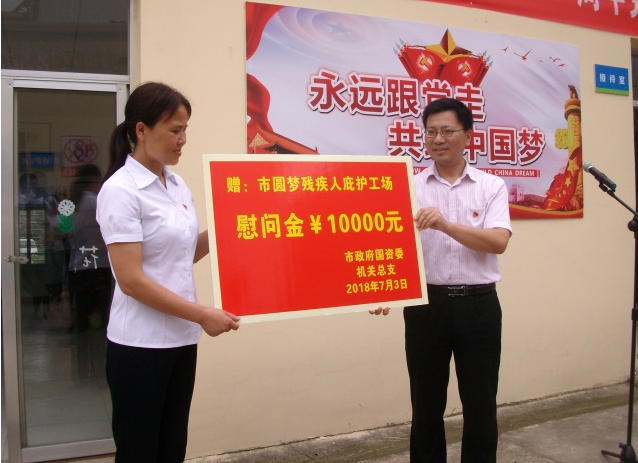 當天的活動中,市政府國資委機關總支為市圓夢殘疾人庇護工場捐贈了慰問金,并為一線公交駕駛員送去了防暑降溫物資。