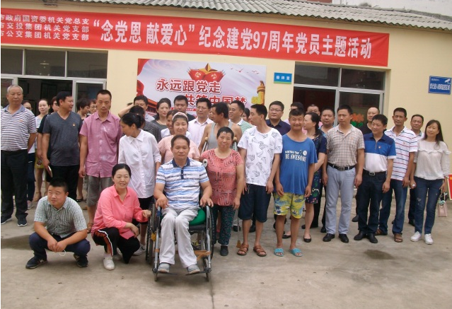 7月3日,為紀念中國共產黨建黨97周年,市政府國資委機關黨總支、市交投集團機關黨支部、市公交集團機關黨支部以“念黨恩、獻愛心”為主題,組織黨員們一同走進市圓夢殘疾人庇護工場,開展7月份黨員主題活動日活動。