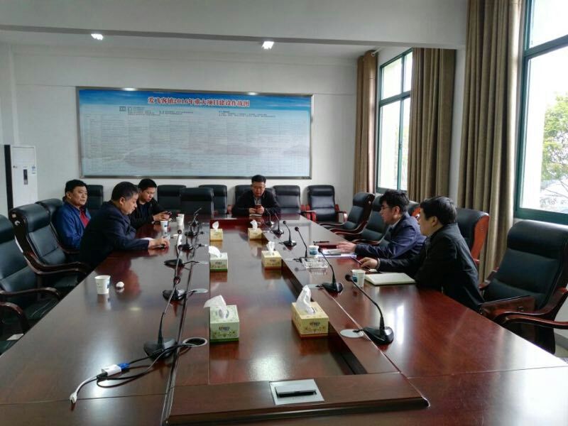 市客管處處長劉來斌、公交集團副總經理張國軍、王群華等與漳河新區(qū)黨委委員、航空產業(yè)園副主任傅強協(xié)商公交服務問題。