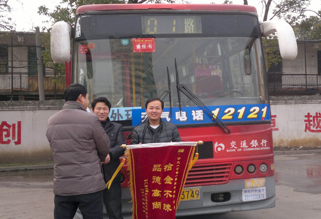 2月15日,荊門市銀都礦業(yè)有限公司總經(jīng)理鄒詩發(fā)等一行3人專程來到市公交一公司,向一公司負(fù)責(zé)人張忠林贈(zèng)送了一面寫著“拾金不昧、品質(zhì)高尚”的錦旗,專門感謝1路駕駛員李想拾到其遺失在公交車上15萬貨款。