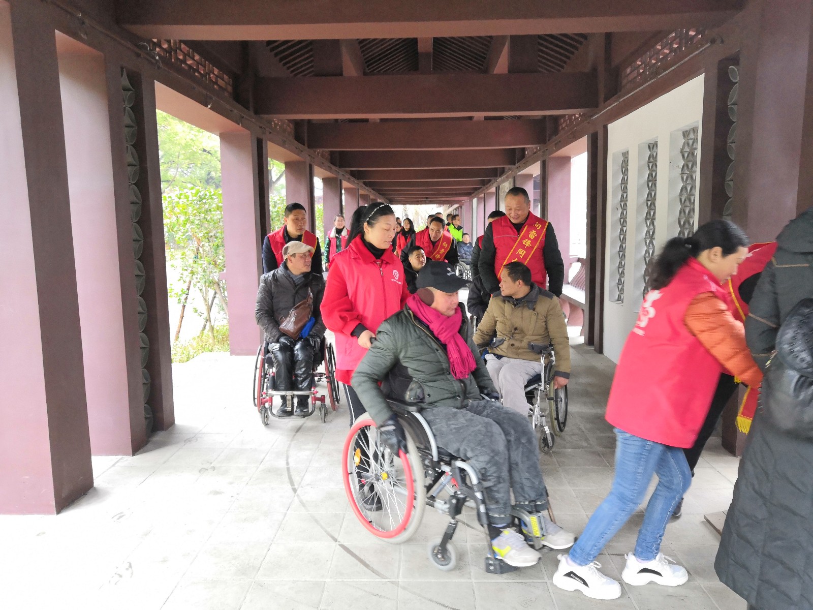 在公園新修建的盤山橋上,志愿者們推行著輪椅,與殘疾朋友以新的視角欣賞著山園美景,一路上歡歌笑語。在涼亭里大家輪流著唱歌助興,敞開心扉,訴說著心中的故事。