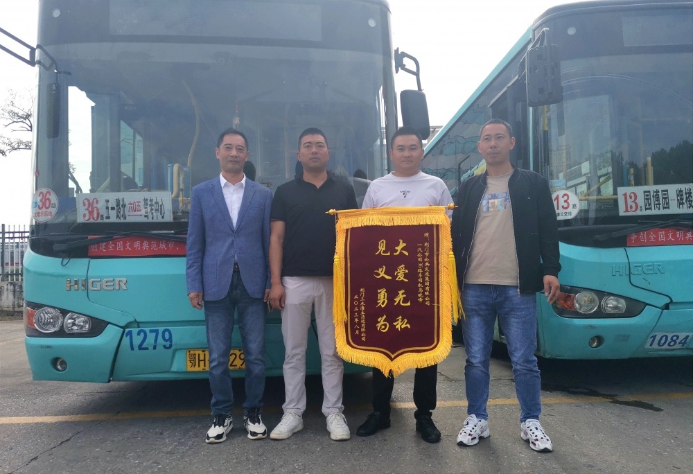 8月28日,貨車司機(jī)帶著印有“大愛無私 見義勇為”的錦旗,再次來到市公交集團(tuán),親手將錦旗送到馬曉峰手中,真誠地感謝馬曉峰見義勇為的高尚品德。