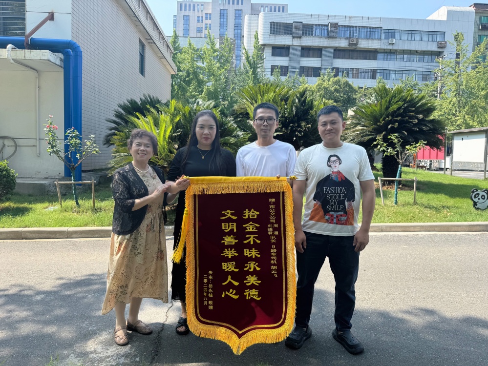 次日上午,胡云飛同路隊長一起來到岳女士家住小區(qū),上門將錢包歸還。錢包失而復(fù)得,岳女士的臉上洋溢著喜悅與感激之情,她緊緊握住胡云飛的手連聲道謝,并送上錦旗為城市文明和公交服務(wù)點贊。