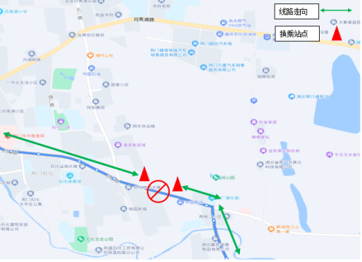 立交橋東側(楊灣公園—化工循環(huán)產(chǎn)業(yè)園)接駁點:楊灣公園垃圾轉運站旁,乘客可在接駁點免費換乘。